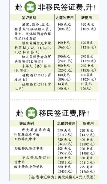 美国驻华使领馆日前发布通知指出,美国国务院将调整赴美签证费,将于4月13日起生效。大多数非移民签证申请和边境通行证的费用将增加,然而所有移民签证费将减少。其中大家最为关注的学生以及游客签证申请费,均从140美元上调至160美元,增加了128元人民币。