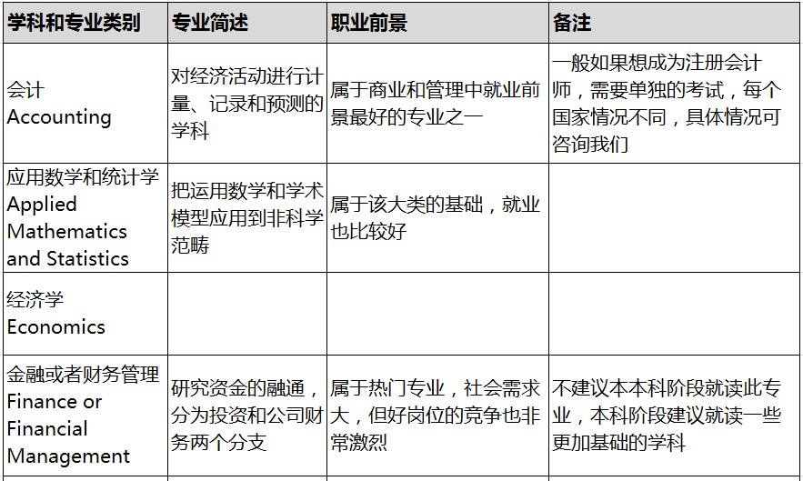 首先来看看职业成功的要素,主要有:勤奋、广博的知识和学习能力、沟通、领导力及运气。勤奋来自于成功动机,成功动机来自于明白自己要什么,什么才能给自己成就感,这一点本科教育的意义特别重大,这就是为什么西方文理教育的精髓,即通过大量的多领域的阅读和探索,通过和教师的讨论以及自己的实践,获得对自我以及外在世界的客观认识,从而清楚自己到底想要什么,什么可以给自己激情,所以西方,尤其是美国的精英大学很少有类似会计、管理类的学科,大部分是类似历史、哲学、语言类等学科。因为本科教育的任务是形成正确的世界观和人生观、具有批判性的思维。如果学生不进入例如美国的文理学院,那么从这个角度,也需要选择一些基础性的学科进行选择。除了历史、哲学外,还可以选择例如数学,因为数学是几乎所有现代理论体系的基础;例如经济学,因为经济学几乎是所有现代商科的基础。