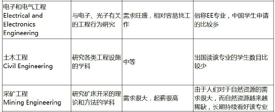 工程是科学和数学的某种应用,整体需求比较大,就业情况普遍看好,中国学生申请相对少,建议学生和家长认真考虑。