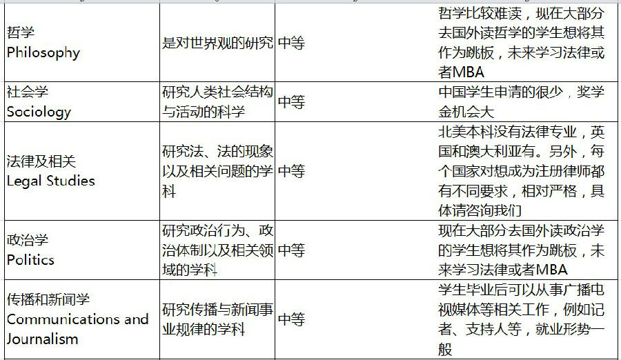 人文和社会科学是人类自我认识的学科,专业本身整体就业一般,这些专业作为预备课程即本科阶段的专业非常合适。