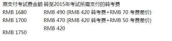 从2014年转考至2015年考试的雅思考生,需补交考费差额,转考手续费维持不变。