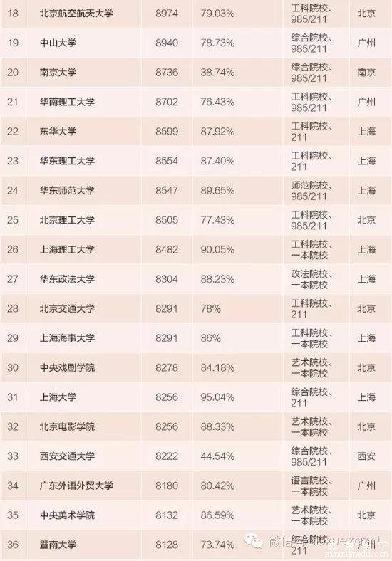 实在不行,要想高薪还能靠所学专业取胜。上榜的100强大学中,除却大学所在地和大学的级别类型,工科、财经、语言、艺术等专业性传统强校也是想毕业后拿高薪报考大学选择的重点之一。100强中,有11所财经院校、7所语言院校、5所艺术院校,这些专业性传统强校中绝大部分并非985或211大学,但都属于这个学科中的佼佼者。