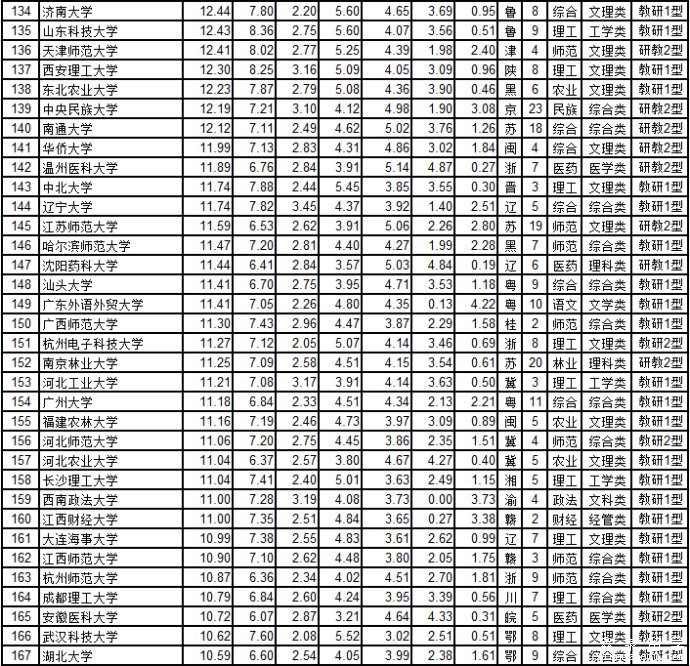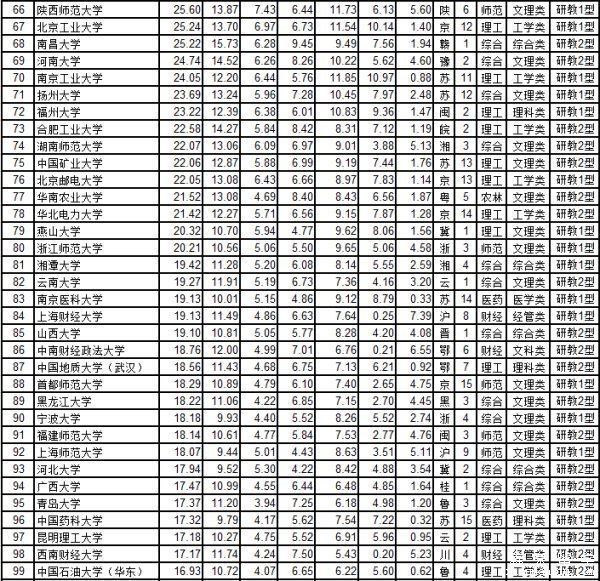 数据来源:《挑大学 选专业--2015高考志愿填报指南》 武书连著,中国统计出版社2015年1月出版