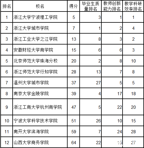 浙大宁波理工学院、浙大城市学院、北师大珠海分校蝉联三甲