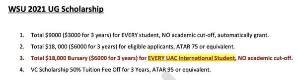 申请要求:2021年接学校offer的学生,可直接获得18000澳币的奖学金