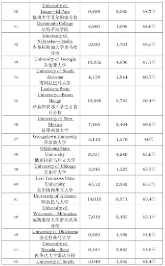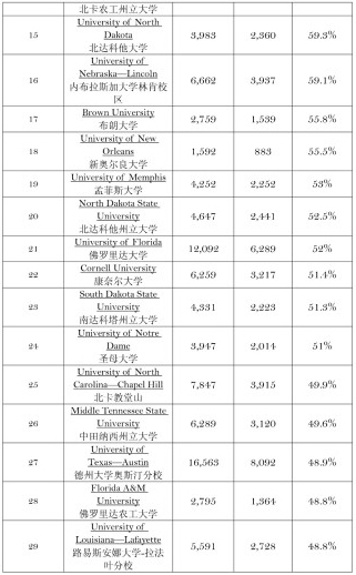 美国综合型大学秋季实际入学率排行榜