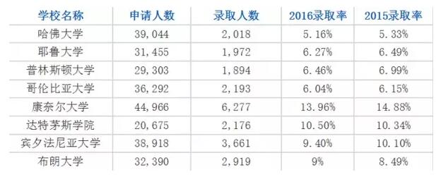 首先,我们先看下今年常青藤学校的录取情况
