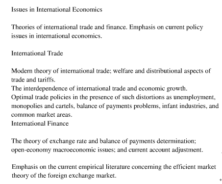 研究内容: 国际经济学是一门独特的经济学科,与其他经济学科不同,它是以各国间的经济活动及国际经济关系为其研究对象,研究国际范围内资源的最优配置以及国际经济关系对资源配置的影响。国际经济学包括微观和宏观两部分:微观部分又称为国际贸易部分,在研究方法上主要使用微观经济分析的基本工具,如供求曲线、生产可能性曲线、无差异曲线、边际替代率、边际转换率等,属于实物层面(real side)的研究;宏观部分又称为国际金融部分,在研究方法上主要使用宏观经济分析的工具,如国民收入恒等式、货币方程式、货币乘数、外贸乘数等,属于货币层面(monetary side)的研究,因此国际金融理论又称为开放经济的宏观经济学(open economy macroeconomics)或国际货币经济学(international monetary economics)。