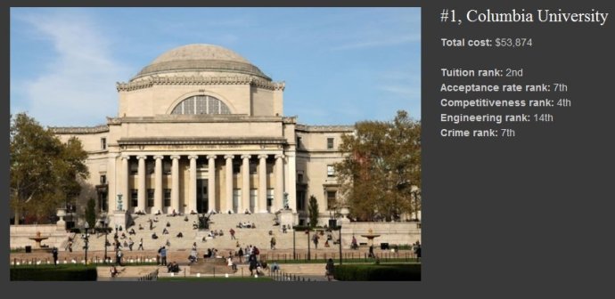 学费以及极其苛刻的学术要求,让这所位于纽约市中心的大学“横扫千军”,当仁不让地坐上了最具压力大学榜的冠军宝座。