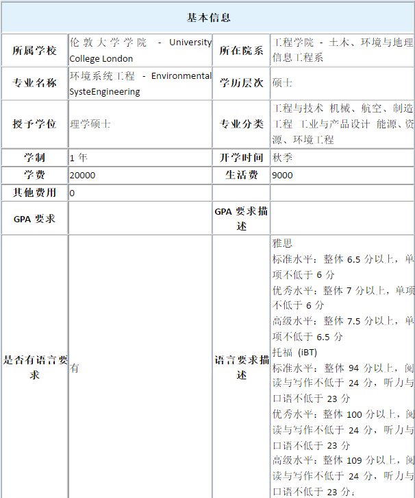 李同学申请伦敦大学学院环境系统工程硕士的个人申请条件是什么?
