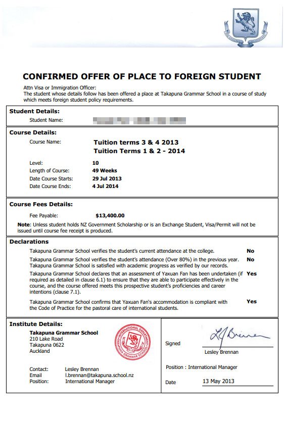 新西兰塔卡普那中学申请条件是什么?鑫泉留学为您带来新西兰塔卡普那中学申请条件的真实案例分析:F同学是文华中学高一在读的学生,平均分为80分,在鑫泉留学的指导下合理的制定了自己的学习计划,成功申请到了新西兰塔卡普那中学的十年级。