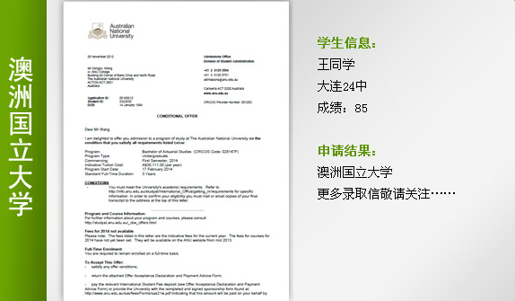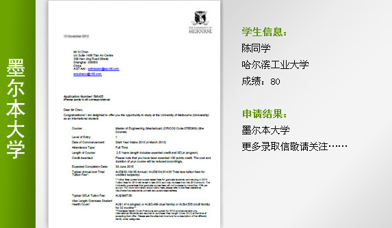 其中更有澳洲八大名校录取案例以证明鑫泉留学卓越的申请实力: