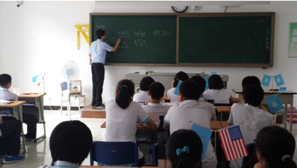 图为派特森国际教育集团的老师与学生模拟情景对话练习口语,并为学生讲解了国外的风土人情。