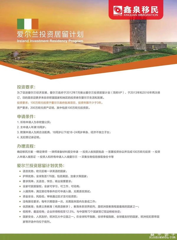 爱尔兰投资移民申请条件