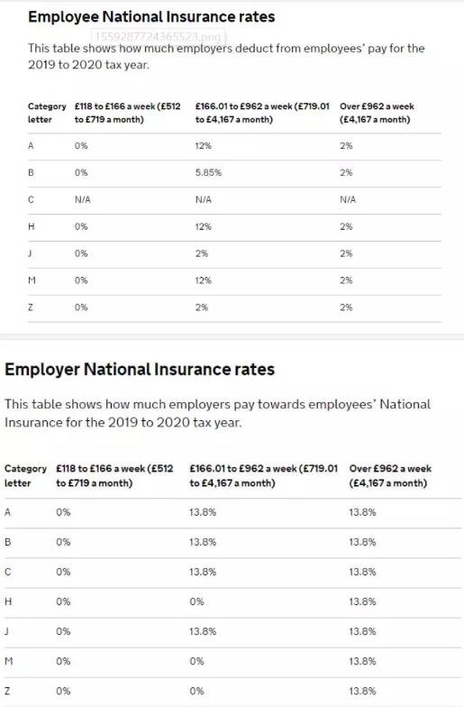 个人缴 NI=(£1833.33--719)*12%*12个月=£1604.64/年(员工自己缴)