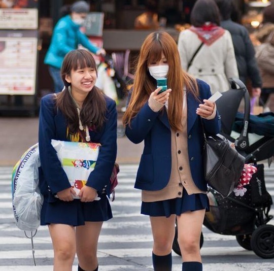 最真实的日本高中女孩.,每个学校的制服不同,但都很好看 。