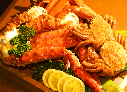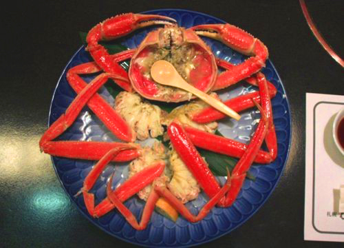 北海道有三大名蟹:帝王蟹、松叶蟹和长毛蟹,肉多味甜。清蒸的螃蟹蘸着姜和醋调制成的酱料吃,味道会更好;蟹肉四喜火锅也不容错过,锅汤甘甜鲜美。