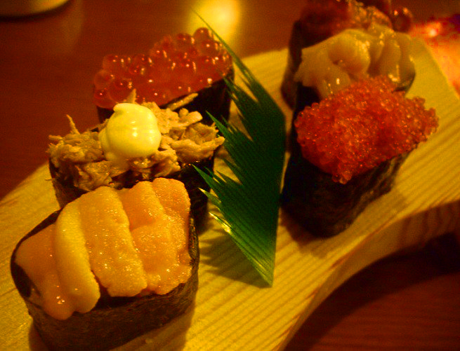 最值得推荐的当然是入口即化、香浓甘美的海胆寿司与金黄饱满、咸香适宜的鱼籽酱寿司了。北海道的奶制品也是极为出名的,普通酒店或是小摊档出售的冰淇淋也因其材料地道新鲜,味道较现下流行的许多名牌雪糕香浓许多。
