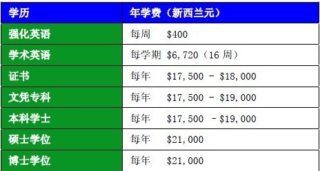 新西兰Unitec国立理工学院学费综述 (Tuition Fee) 注册费一次性NZ$150: