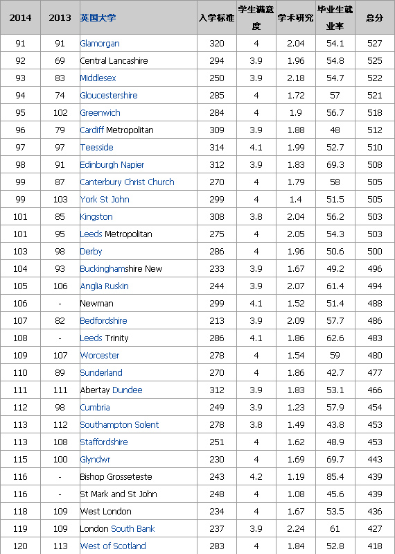 其在此排名中的入学标准、学生满意度、学术研究都取得不错的分数,但其毕业生就业率仅61.5%,就业率的低下是影响其排名下滑的关键因素。看来学校领导们不得不感叹:被那些找不到工作的毕业生们和英国居高不下的失业率拖累啦!