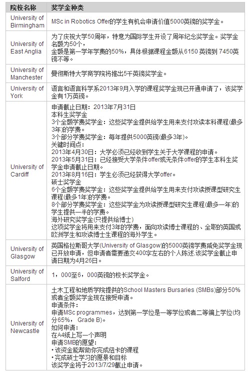 英国院校奖学金