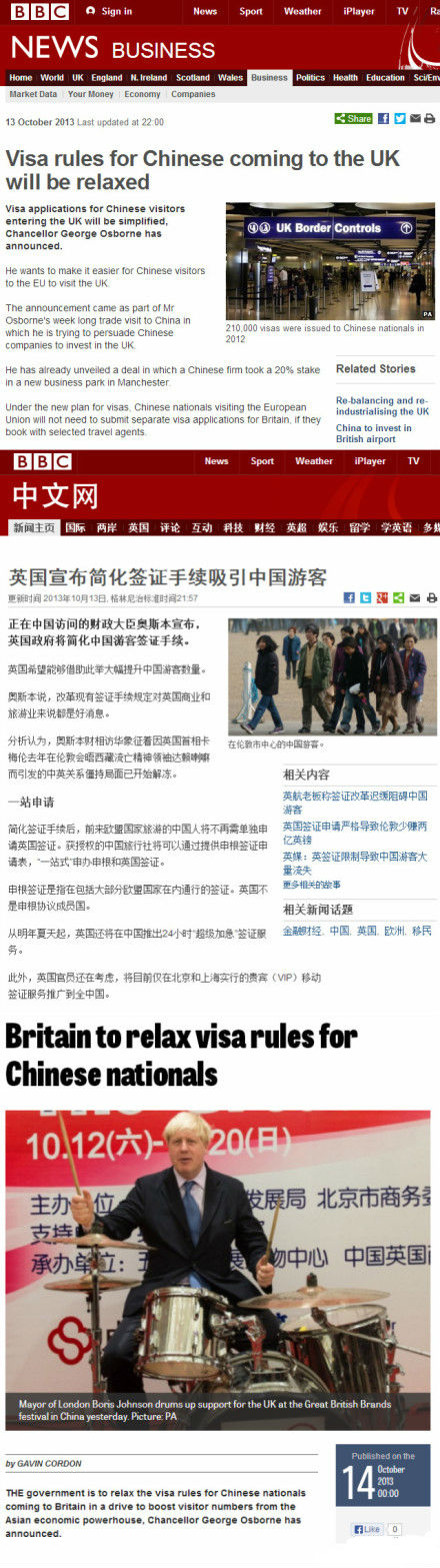 据介绍,中国是英国旅游及商业的重点发展市场之一。2012年,英国共向中国公民发出了21万张赴英