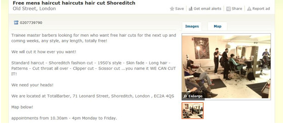 现在,为舍不得剪头发的大家提供福利来,那就是:在伦敦,免费剪头发!!!没错,不是9磅9,也不是6磅6,是免费!!!!!(购物台的脸)